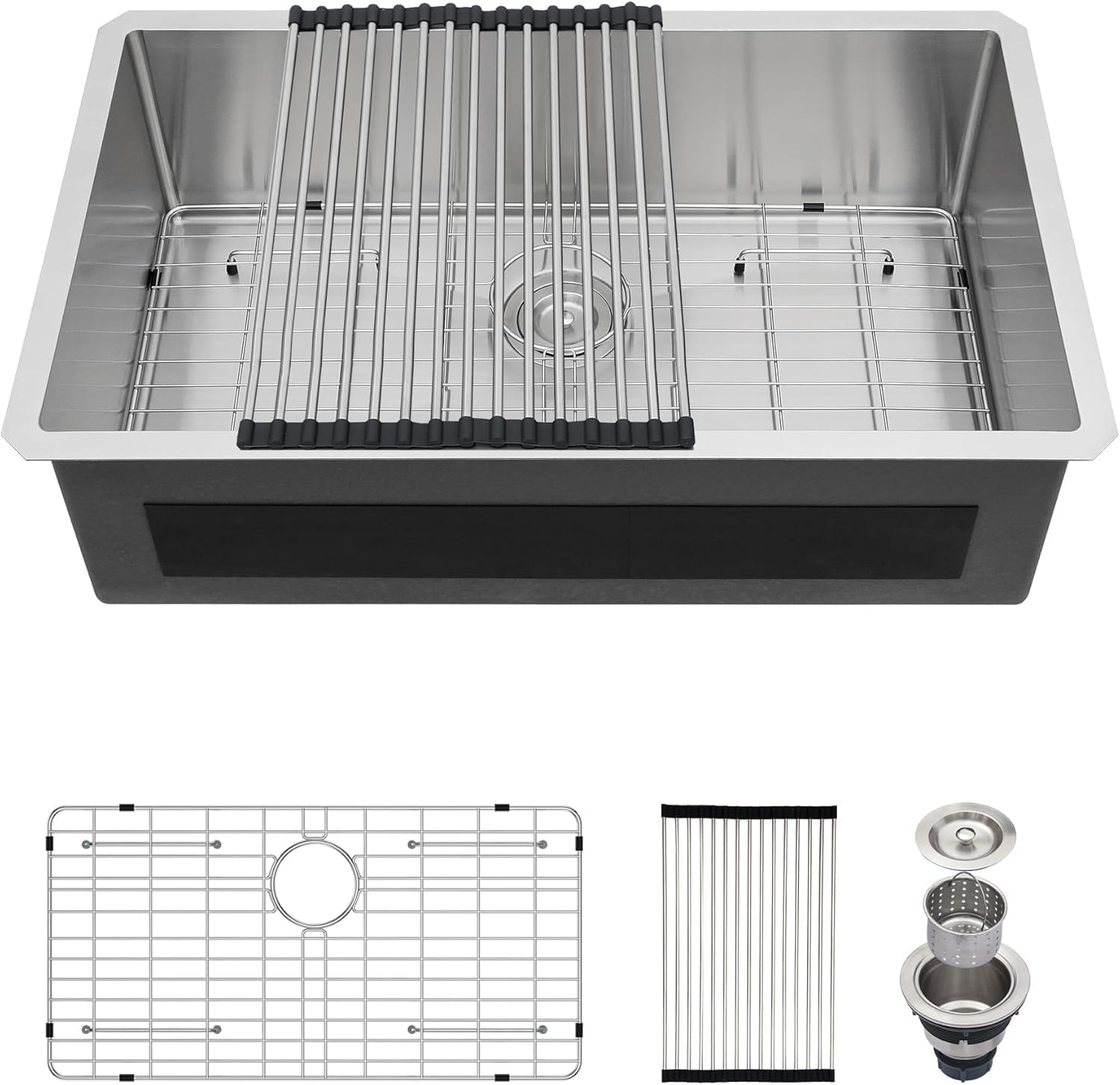 | Included Components | 30 Inch stainless steel undermount sink, Bottom grid and Drain strainer assembly, Cutting board, Roll up drying rack, Stainless colander |