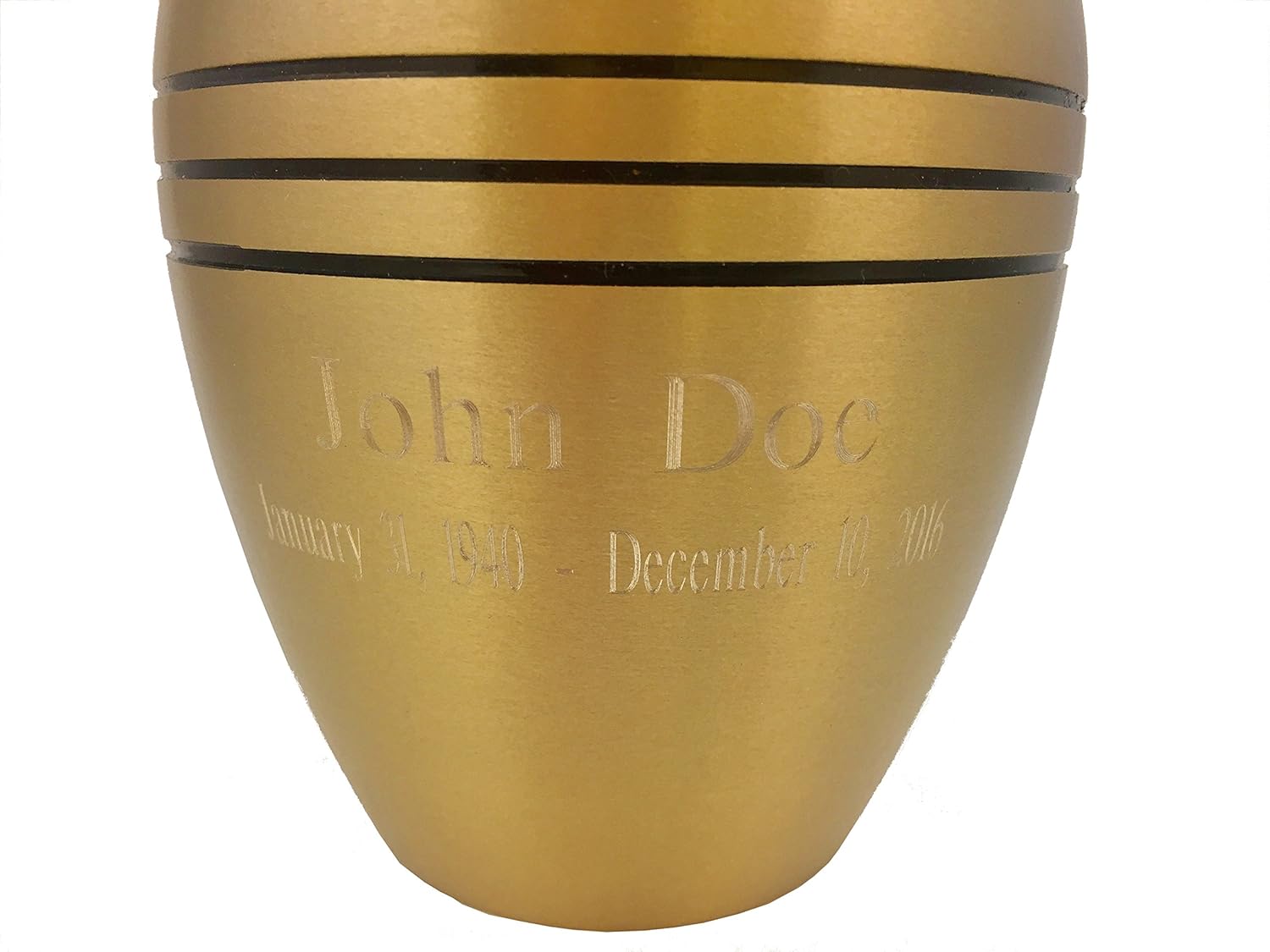 The Beautiful Life Urns Dignity Gold Cremation Urn series, with its timeless brushed gold or pewter finish and three elegant black accent lines, this classic urn offers a distinguished way to honor and celebrate the life of a cherished loved one. Thoughtfully designed from durable, high-quality brass, this urn provides a peaceful resting place and a lasting tribute, crafted to bring comfort and dignity to your family during a time of remembrance. Each urn is available in multiple sizes to suit your needs, and is proportioned thoughtfully to serve as a fitting memorial for a loved one. With an elegant brushed finish accented by three classic black rings, the Dignity Gold or Pewter Urn complements any memorial space or home decor, offering a simple yet powerful reminder of a life well-lived. For added assurance, this urn features a secure threaded lid, designed to keep human ashes safe and undisturbed. Select urns in this collection also offer custom engraving, allowing you to add a personalized message to honor your loved one in a truly unique way. Beautiful Life Urns takes pride in providing ethically crafted, high-quality memorials at an affordable price, offering families a dignified alternative when honoring those they hold dear. Celebrate a beautiful life with the Dignity Gold Cremation Urn, and let it serve as a testament to the memories shared and the love that remains. At Beautiful Life Urns, we believe in supporting families with compassionate, respectful options, helping you honor and remember your loved one with grace and dignity.