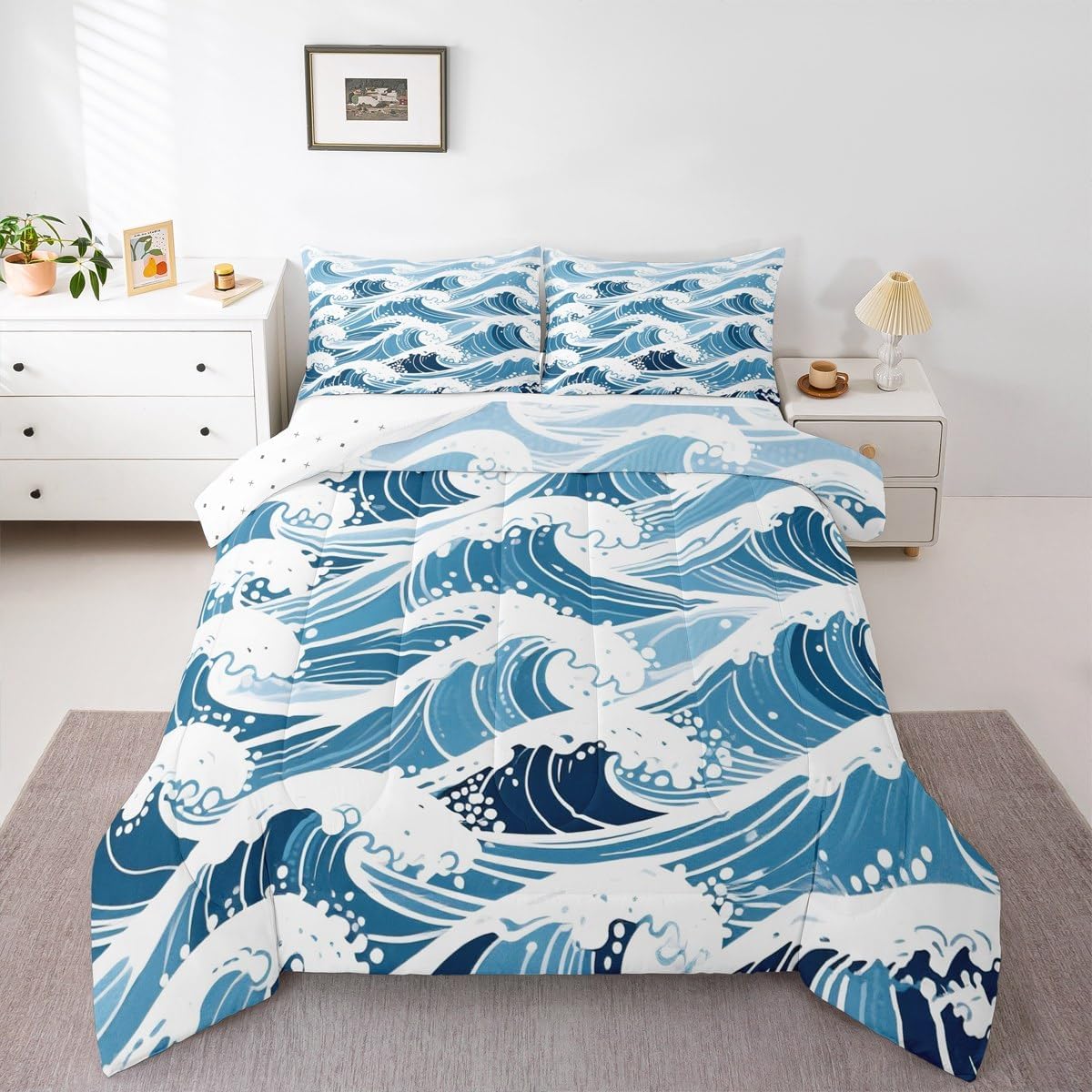 Size Information Toddler size: 1 Down Comforter 42"W x 58"L, 1 Quilted Pillowcase 30"W x 20"L. Twin size: 1 Down Comforter 68"W x 90"L, 1 Quilted Pillowcase 30"W x 20"L. Full size: 1 Down Comforter 79"W x 90"L, 2 Quilted Pillowcases 30"W x 20"L. Queen size: 1 Down Comforter 90"W x 90"L, 2 Quilted Pillowcases 30"W x 20"L. King size: 1 Down Comforter 104"W x 90"L, 2 Quilted Pillowcases 36"W x 20"L. Versatility We have many kinds of styles for you to choose. You can easily find a product that suits the style of your room. The item is not only Suitable for your home, bedroom, guest room, living room, or rv, your families, friends, relatives, boyfriend,girlfriend. Modern Design The luxury aesthetic comforter set is made reactive printing and dyeing process. The pattern is clear, the color is bright, which will not fade after repeated washing. Personalized As a manufacturer of digital printed home textiles, we follow current trends and bring you the latest and stylish home textile products. The item will make the room decorated in exquisite taste. We sincerely hope you will love the bed set.