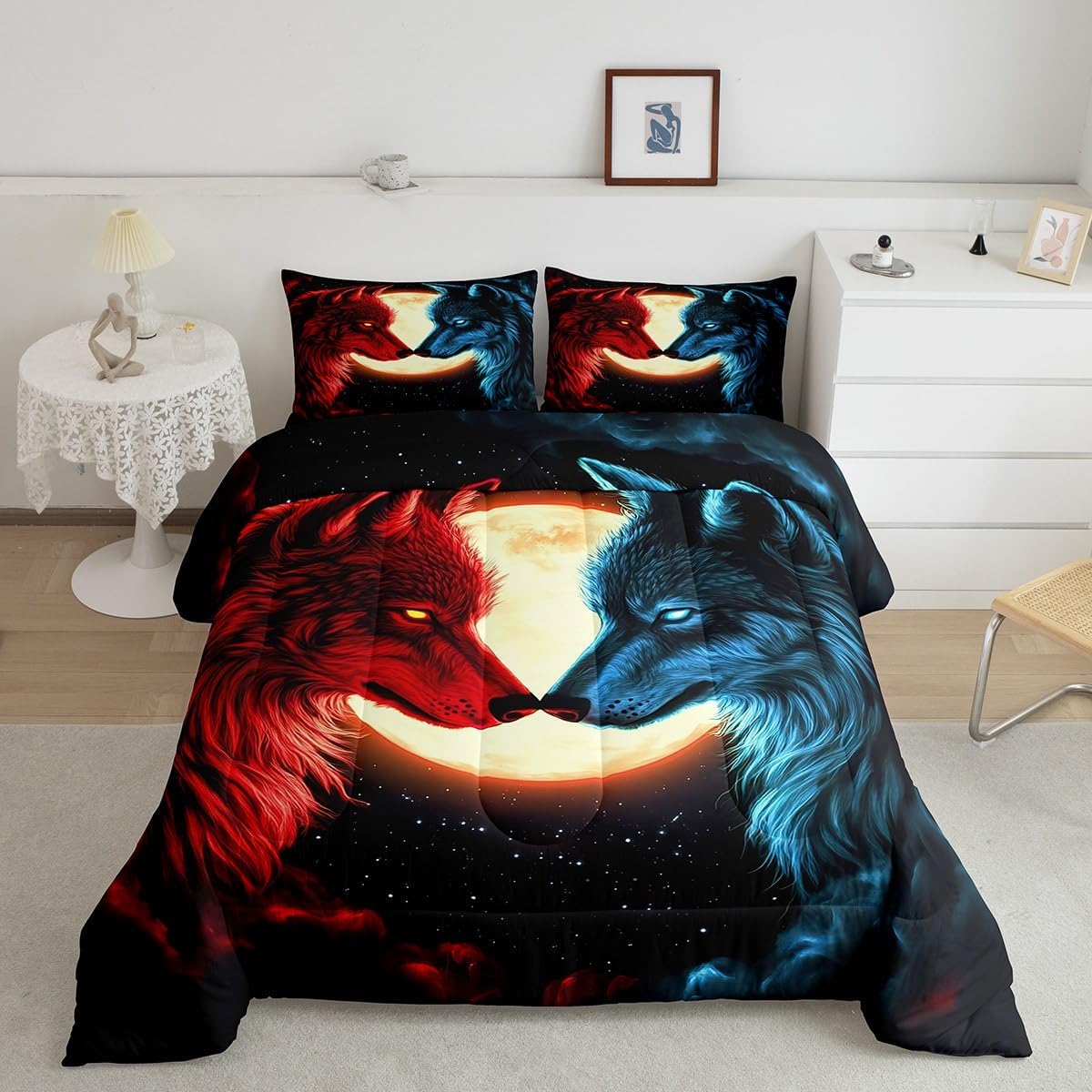 Makeover your bedrooms every season with our comforter sets; good item for your room, girls boys youth room, master bedroom Also a great decoration idea for your mom, dad, sister, brother, grandma, wife, husband, daughter, son and all other beloved Size Information:1 Toddler size comforter 42" X 58" and 1 pillowcase 30" X 20"1 Twin size comforter 68" X 90" and 1 pillowcase 30" X 20"1 Full size comforter 79" X 91" and 2 pillowcases 30" X 20"1 Queen size comforter 90" X 90" and 2 pillowcases 30" X 20"1 King size comforter 104" X 90" and 2 pillowcases 36" X 20"Useful and practical: A practical product for homes, dorm rooms, hotels, guest rooms. Comfortable to use for being polyester which is soft and breathable Unique design:Vivid colors and clear printed with digital printing. These unique designs match well with various color of your rugs, curtains, headboard, furniture, and all other decor accessories Characteristic:As manufacturers of digital printed home textiles, we follow current trends and bring you new home fashion Either a comforter to your family or friend, relative or boyfriend girlfriend, or to yourself, the item should be interesting and authentic Note:The comforter and pillow cases are printed on the front side only, the back of them are white colored
