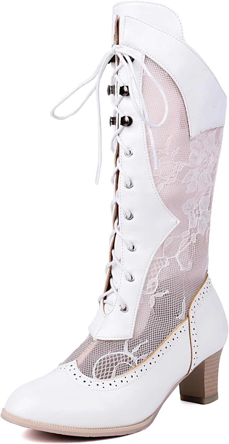 | Color | Beige Mid-calf Victorian Boots |