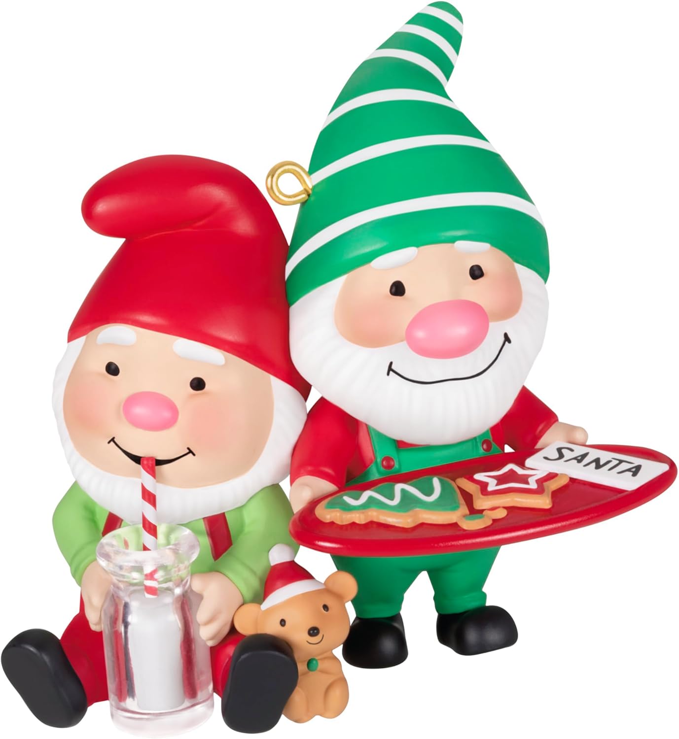 Reminiscent of summer camp activities and classroom party games, this Christmas tree ornament features two gnome friends playing dress-up with the Christmas decorations. Topped with a snowflake star on his head and holding two ornaments in his hands, Gnice strikes a poised pose as the pine tree while Gnaughty tangles him up in colorful Christmas lights. 4th in the Gnome for Christmas Keepsake Ornament series. With unparalleled artistry and exceptional detail, Hallmark Keepsake Christmas ornaments are perfect for preserving precious memories, commemorating special milestones and celebrating individual hobbies and interests.