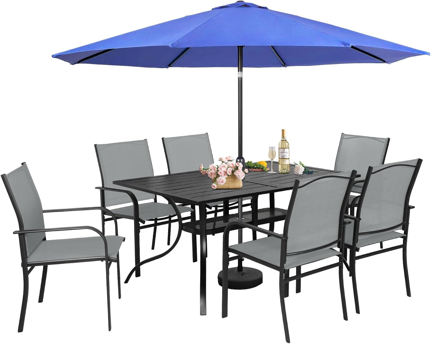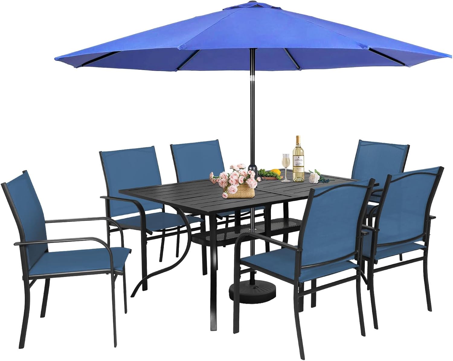 【About Incbruce】 Incbruce is a young company with rich experience in the outdoor furniture market. Black industry design style is our unique feature. Our outdoor furniture sets products are the best choice for you to decorate residential and commercial scenes. Because it is specially designed for outdoor scenes applying. You can enjoy your life of drinking wine or tea or coffee with your friends conveniently in the garden or backyard. To create a comfortable and high-quality outdoor living for our customers is our main goal. And making a different experience for you in the leisure afternoon period. We will meet your demands according to your requests in any various kinds of situations. Looking forward that you will have a wonderful life in future with our products. Specification Color of Surface: Black Blue Brown Grey Material: Metal Overall Dimension : Table: 37.8” x60” x 28.5” (D x W x H) Chair: 20.8” x 22.6” x 36.2” (D x W x H)
