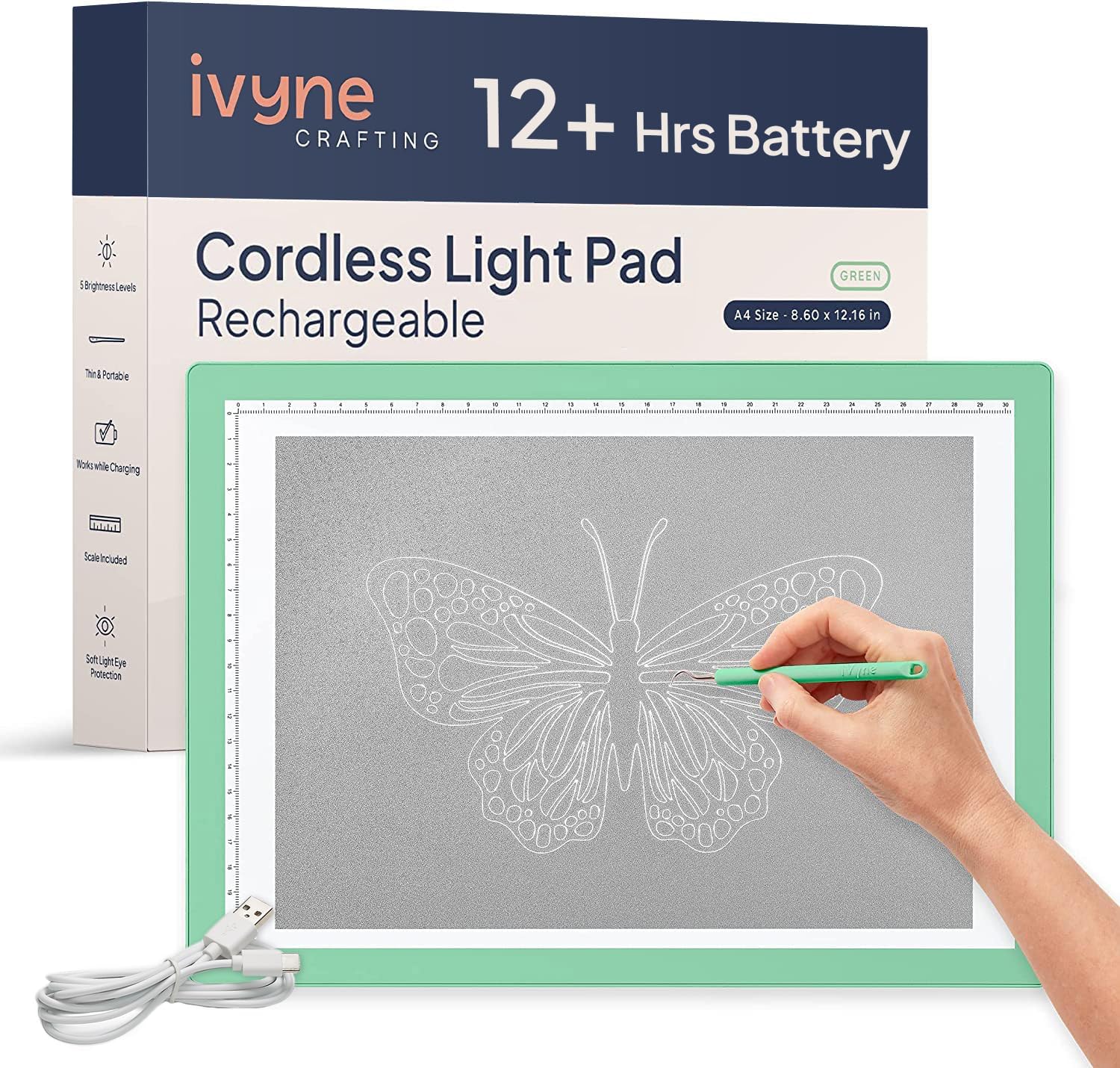 • All in One Diamond Art Kit – Unleash your creativity with the iVyne rechargeable light pad for diamond painting. This diamond art light board comes with 28-slot storage box, trays, pens, stickers, and more, making it a complete solution for beginners and seasoned diamond artists alike