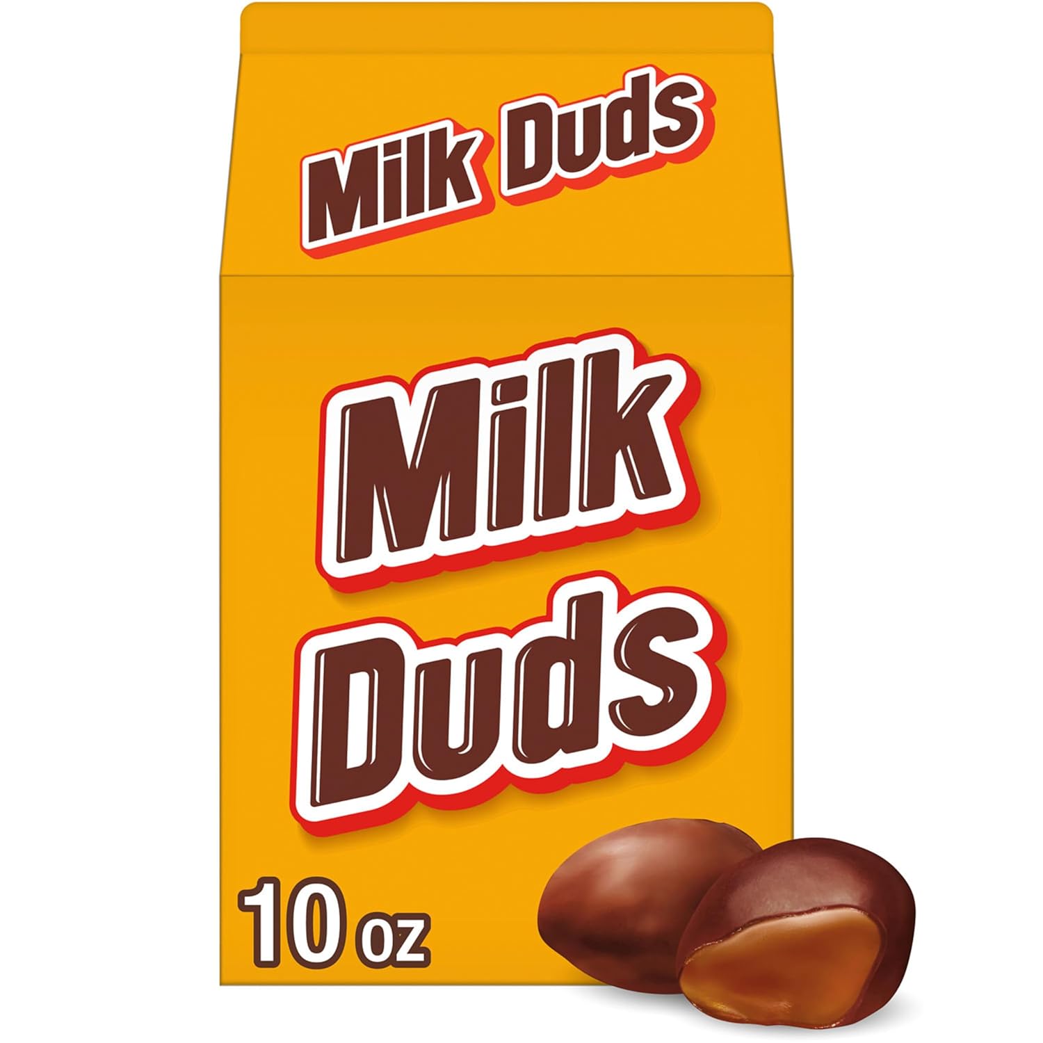 MILK DUDS chocolate caramel candy treats are well loved for a reason. Try the classic confections that have delighted candy lovers for decades. Made of chewy caramel covered in delectable chocolate candy, every morsel is a delicious treat you can snack on and share with those around you. MILK DUDS caramel candy is a classic movie snack, and it's a perfect option for your work, home and on-the-go sweets. Use these boxes of caramel and chocolate candies as festive stocking stuffers or candy dish fillers at holiday parties.