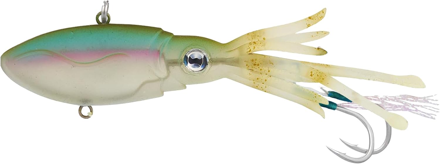 Take Vibration Lures to a New LevelDiscover a new dimension of angling with the Squidtrex Vibe by Nomad Design, the ultimate companion for saltwater lure fishing. This Patented design, packed with innovative features including TPE soft plastic construction, an internal through wire construction, and an extra belly eyelet, accentuates the strength and reliability of deep sea fishing lures. The lure comes rigged with super strong BKK assist hooks adding an edge to your bait, making it the go-to saltwater lure for fishing enthusiasts.Step into the Future with UV & Glow ColorsDive deeper into the abyss with the Squidtrex Vibe. Its glow squid lure enrichens the experience of saltwater fishing, turning it into a spectacle. Enlightening the depths with UV and glow colors, this lure will attract fish better than any other. The addition of 2% Squid scent gives the plastic lure an irresistible appeal to your prey; this combination of glow and scent is what makes it one of the most effective squid fishinglures available.Introducing an Unbeatable Performance A mark of excellence, the Squidtrex Vibe shines in the realm of saltwater lures. Have evolved Deep sea fishing lures, presenting an all in one solution. Squidtrex for demersal reef species & pelgic species such as Tuna and it's also incredibly effective. The lure sinks fast and level, vibrating on the lift, and subtlety shimmies on the fall - an irresistible dance to any game. With its Gorilla Through Wire construction and heavy duty BKK twin assist squid hook, its strength is indisputable. Experience the new era of plastic fishing lures now, and take your angling game to a whole new level.-Patented design with TPE soft plastic-Internal wiring and extra stinger hook eyelet-UV & glow colors with 2% Squid scent-Perfect weight for strong vibration and fast sinking-Rigged with heavy duty BKK twin assist hooks