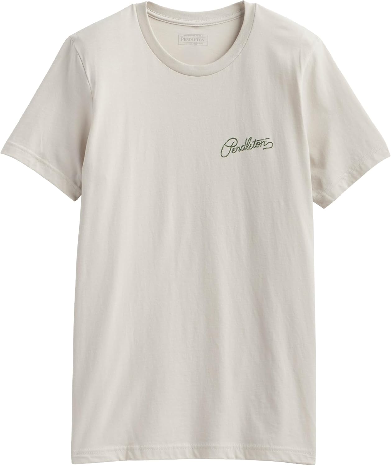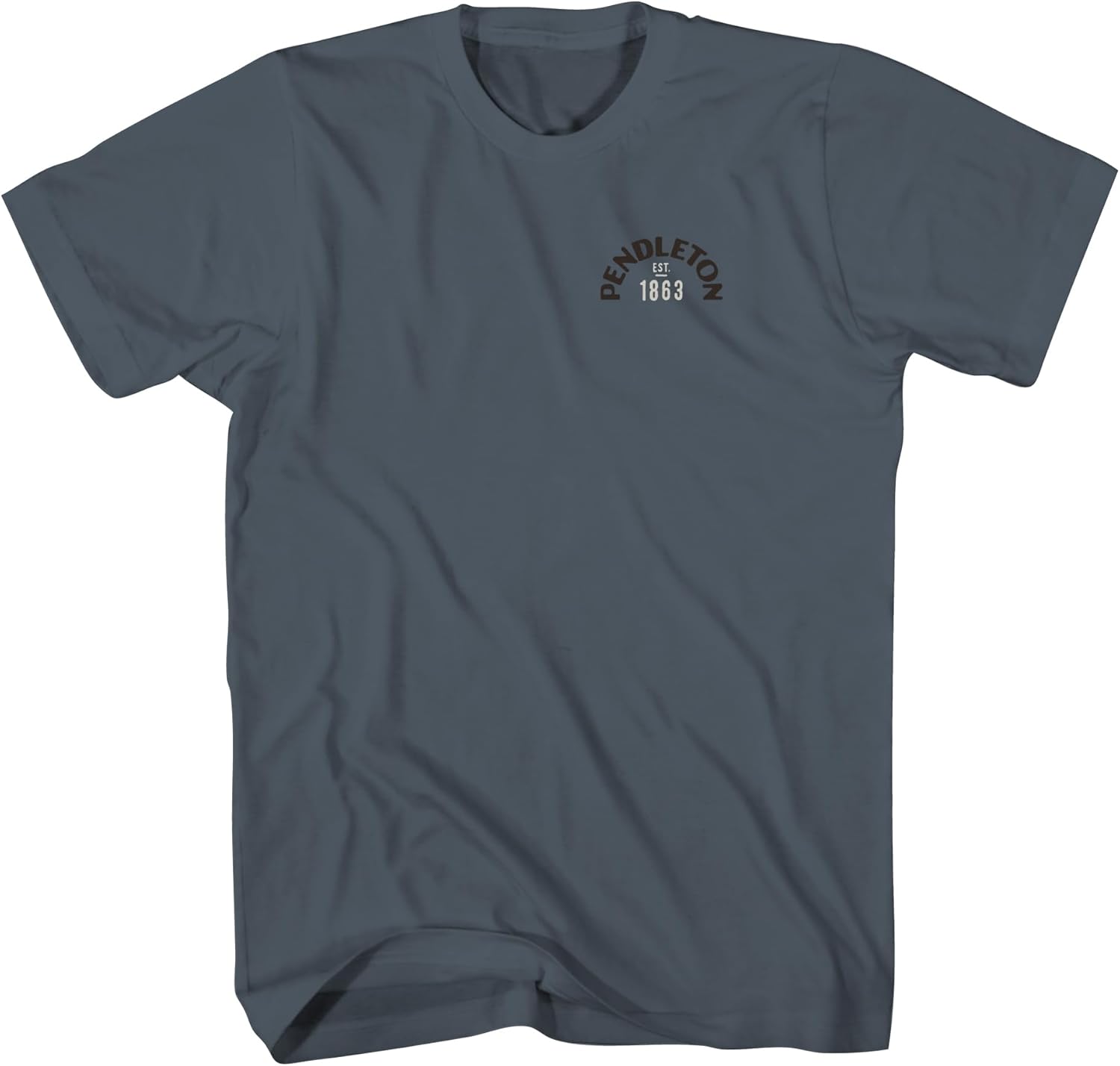 Embrace heritage and comfort with our Pendleton Men's Graphic T-shirts, a true staple for any wardrobe. This exceptional men's shirt, part of our exclusive Heritage Tee Collection, celebrates Pendleton's rich history and deep connection to America's diverse landscapes. Each menâs top features exclusive Pendleton designs, highlighted by a classic Pendleton logo subtly placed on the chest, complemented by a larger, bolder version across the back. This thoughtful design enhances its heritage-inspired aesthetic and adds a unique visual texture, setting it apart from ordinary graphic shirts. Experience all-day cotton comfort with a casual top made from 100% ring-spun cotton. This premium fabric offers a breathable, lightweight feel that lasts, making it your go-to country shirt for men. You'll appreciate the superior comfort and quality that defines our collection. Our graphics feature water-based and discharge prints, which ensure an incredibly soft, "no-feel" finish that blends seamlessly with the fabric. Unlike thick, plasticky alternatives, these prints are barely noticeable to the touch, providing premium softness and enduring quality wash after wash. Designed for modern comfort, the classic crew neck offers a clean, flattering line that complements any build. The short-sleeve top is cut for optimal movement and a relaxed yet polished look. This versatile men's summer top pairs effortlessly with your favorite denim, casual pants, or joggers, making it a quintessential staple for any wardrobe. Whether youâre outdoors, exploring the city, or just unwinding at home, it combines heritage style with practical comfortâideal as short-sleeve tops for men, shirts for teen boys, or go-to country shirts for weekend escapes.