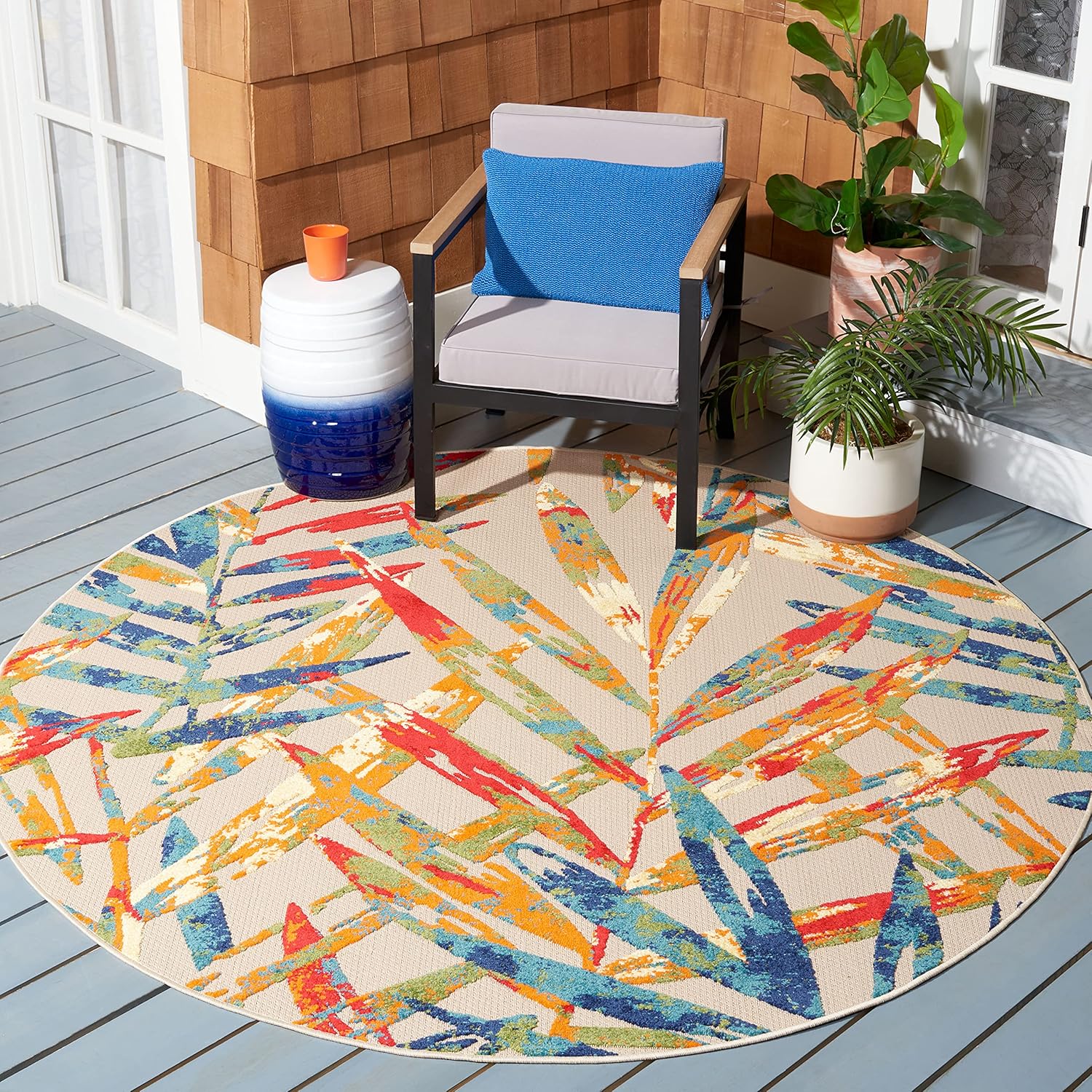 Cabana indoor-outdoor area rugs bring a splash of color and pattern to any living space. Their sturdy polypropylene material makes them ideal for rain or shine. With charming floral patterns, these rugs work beautifully in the kitchen, sunroom, entryway, family room, patio, or mudroom.