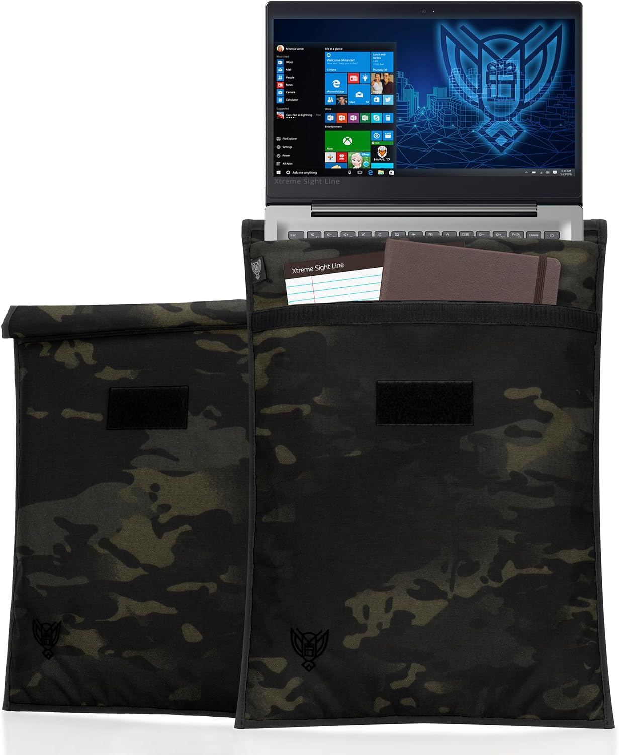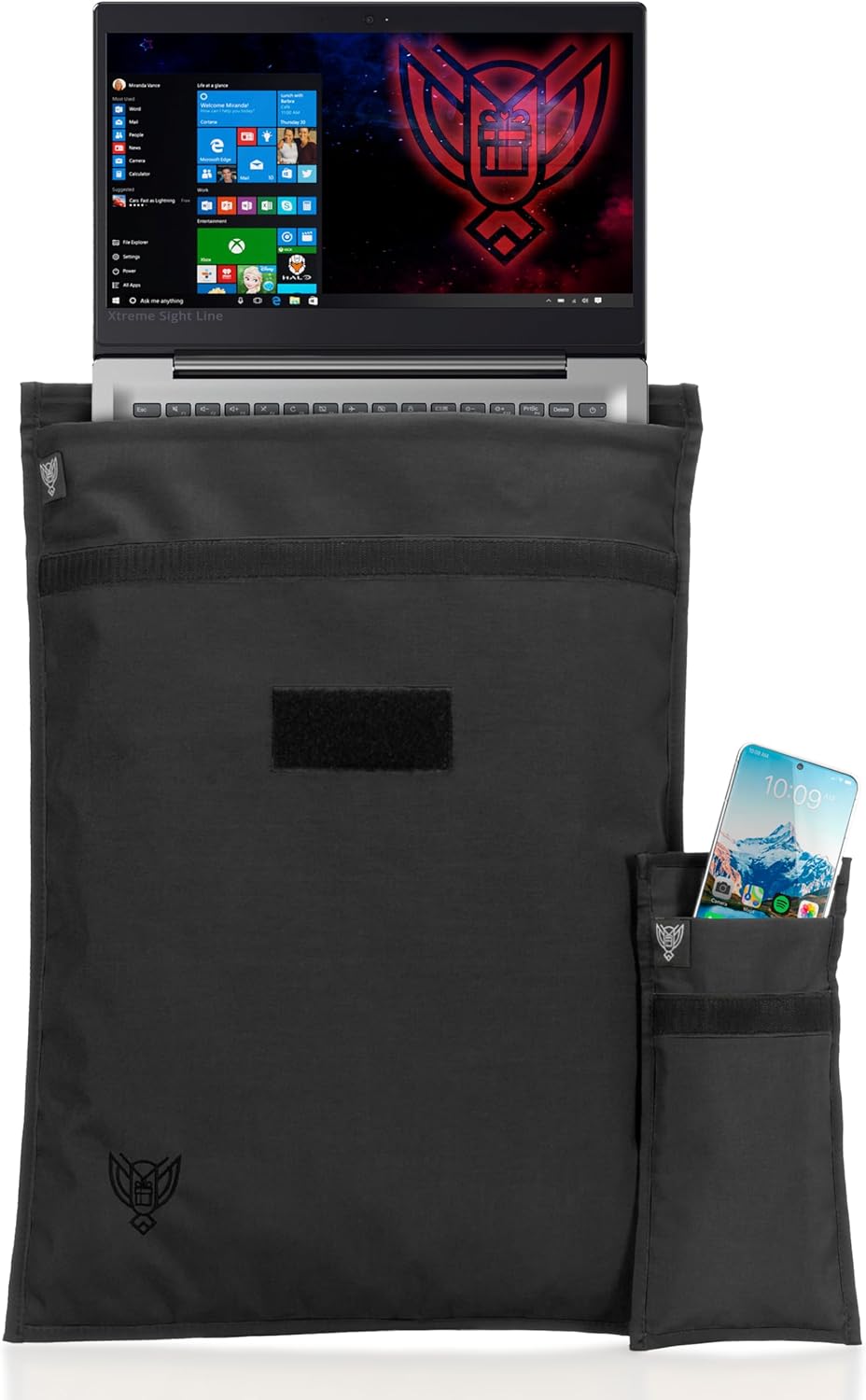The Xero 1 Faraday sleeve combo provides a comprehensive security solution for your entire digital ecosystem, combining the specialized shielding of both the Small and Large Xero 1 sleeves. This powerhouse duo is engineered to safeguard your most essential devices, from smartphones and small electronics to full-sized mobile workstations, against unauthorized tracking, remote hacking, and signal interference. Both sleeves are constructed with a rugged high-grade nylon exterior and impact-absorbing foam padding, ensuring your hardware remains physically protected from the bumps and drops of daily travel while maintaining a professional, streamlined aesthetic. At the heart of both the Xero 1 ~ S and Xero 1 ~ L is a triple-layer core of high-attenuation Xtreme Sight Line Diamond Form Faraday fabric. This advanced material creates an impenetrable barrier that instantly severs all cellular, Wi-Fi, Bluetooth, and GPS connections the moment your devices are sealed inside. For the mobile professional, this means total privacy and data security without needing to power down. Both sleeves feature a thoughtful dual-compartment design, utilizing a versatile front slip pocket for accessories like cables, wallets, or portable chargers. This allows for the unique convenience of charging your devices while they remain fully isolated and shielded within the primary Faraday compartment. Whether you are commuting across town or traveling internationally, the Xero 1 Faraday Bundle delivers a complete, travel-ready defense for your modern digital life.