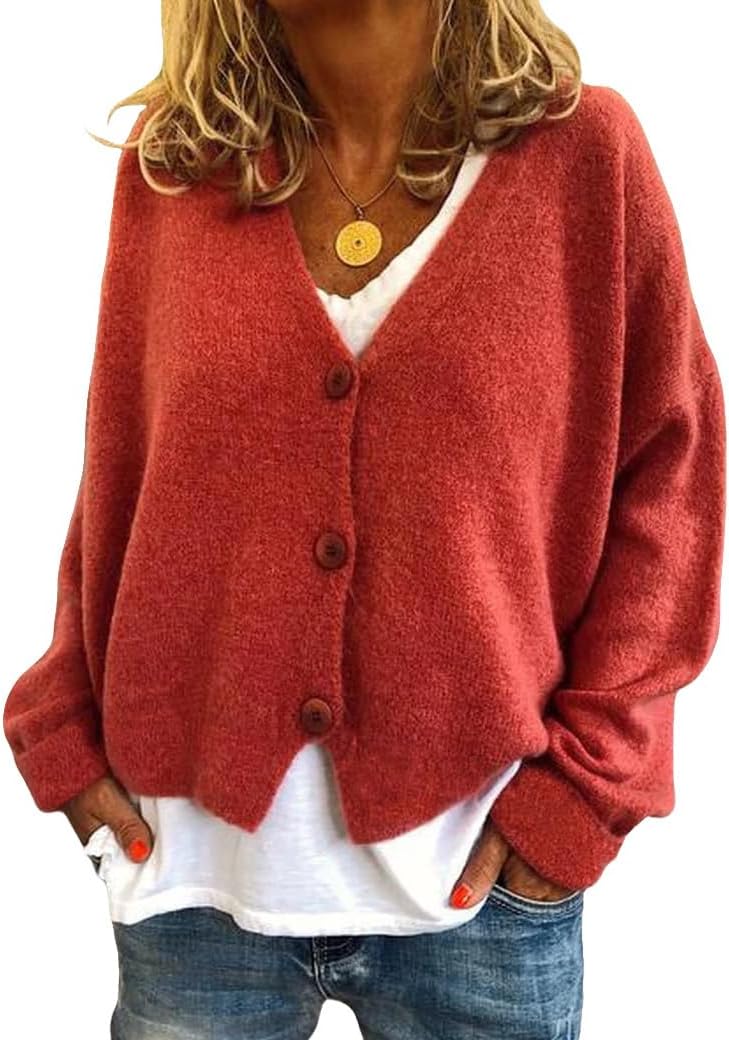 ZOCANIA Womens Cardigan Sweaters Button Down Knit Sweater for Women V Neck Long Sleeve Solid Color Lightweight Loose Fit Cardigans Trendy Casual Fall Fashion Clothes
